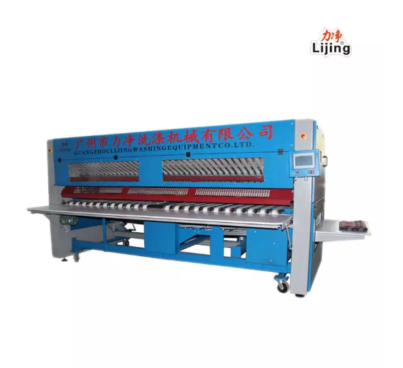 洗滌設(shè)備還包括床單被套熨燙機(jī)。它的主要功能是熨燙床單被套的烘干機(jī),也還具有烘干功能。 廣州力凈生產(chǎn)的燙平機(jī)有2.5米、2.8米、3米、3.3米等寬度大小來(lái)分。 熨燙輥的數(shù)量也分為單輥熨燙機(jī)到五輥熨燙機(jī)。 具體型號(hào)比例根據(jù)客房數(shù)量和床單和被套的寬度選擇。